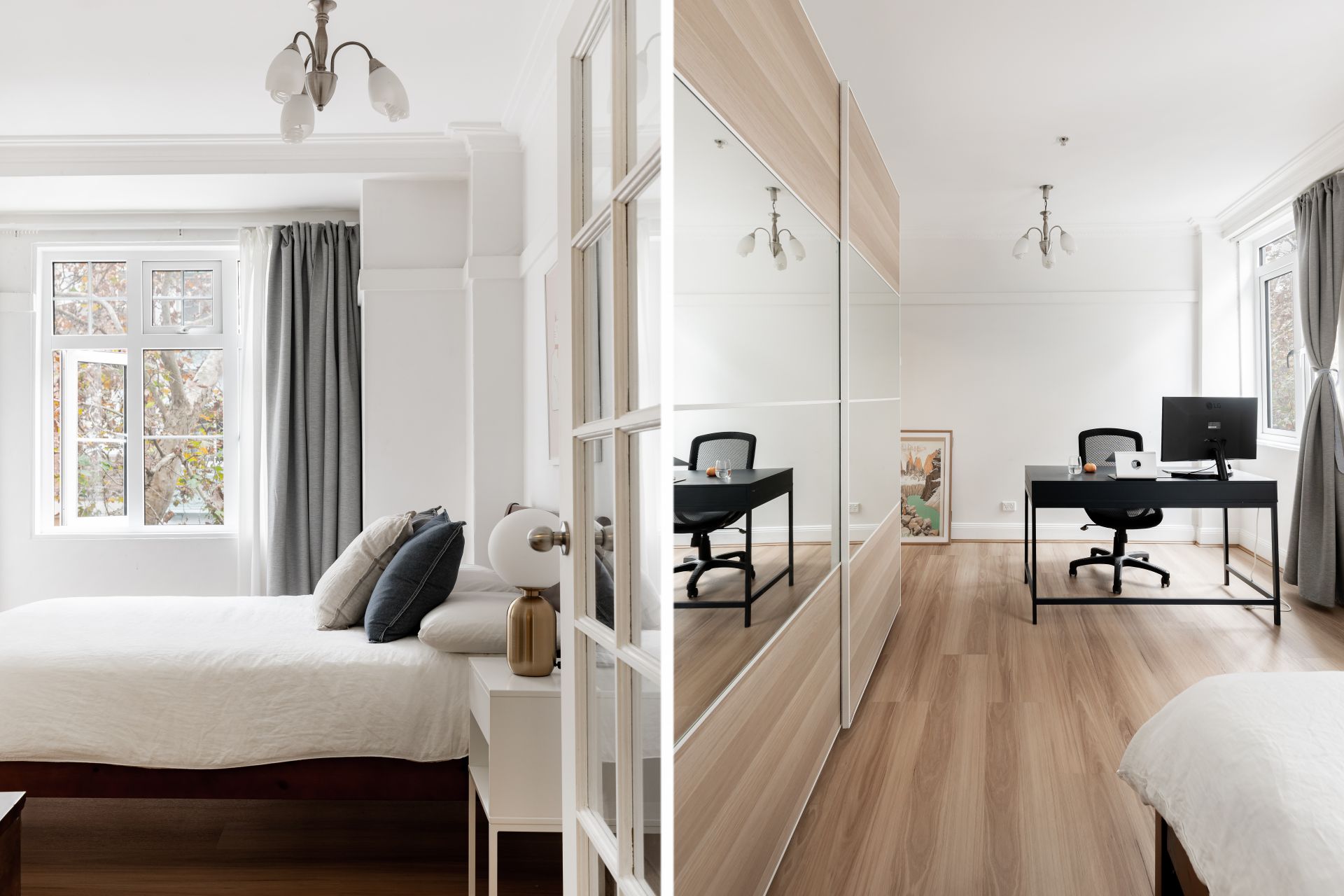- Polished timber floorboards