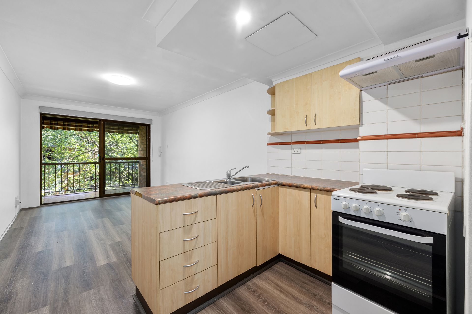 - Open plan living area with electric kitchen